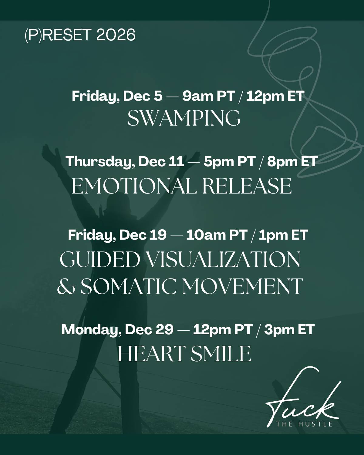 Session 1 - SWAMPING: A full-body emotional detox that clears the mental and energetic residue you’ve been carrying so you can enter the new year clean, light, and unburdened.