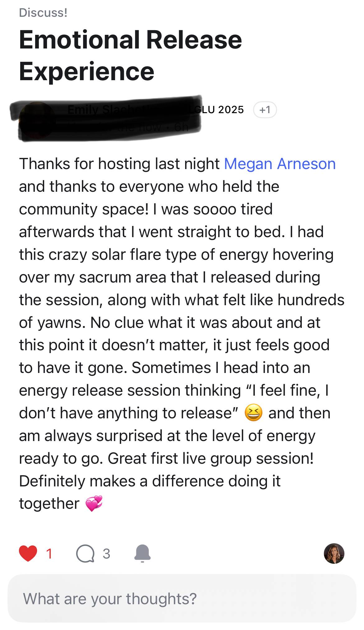 Session 2 - EMOTIONAL RELEASE: A guided somatic practice that helps you safely move stored tension and old patterns out of your body so you feel grounded, regulated, and back in your power (*involves light breathwork.)