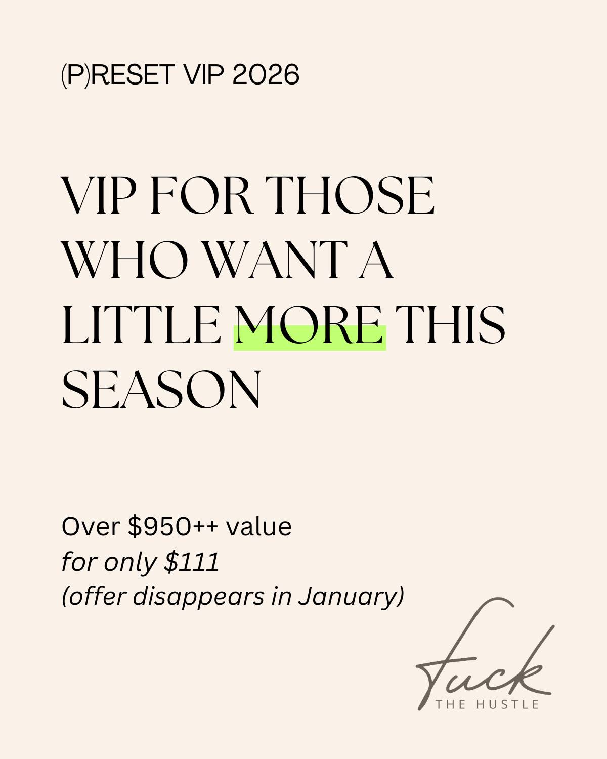 * 2 Months FREE inside the Fuck the Hustle private members community (+ all the bonuses that come with membership)